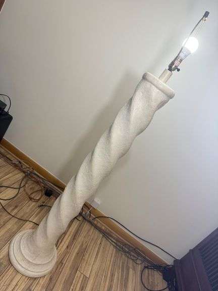 Elevate your living space with this striking floor lamp. The lamp showcases a captivating twisted design with a textured finish. With an overall height of approximately 5 feet, it adds both light and artistic flair to any room. Tested for power.