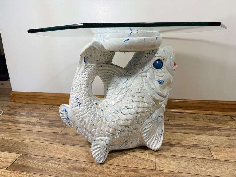 DescriptionMake a splash with this uniquely designed accent table. Featuring a fish sculpture base, this table is sure to become a conversation starter in any room. Topped with a glass surface, this table is perfect for adding a touch of coastal charm and whimsy to your home décor.