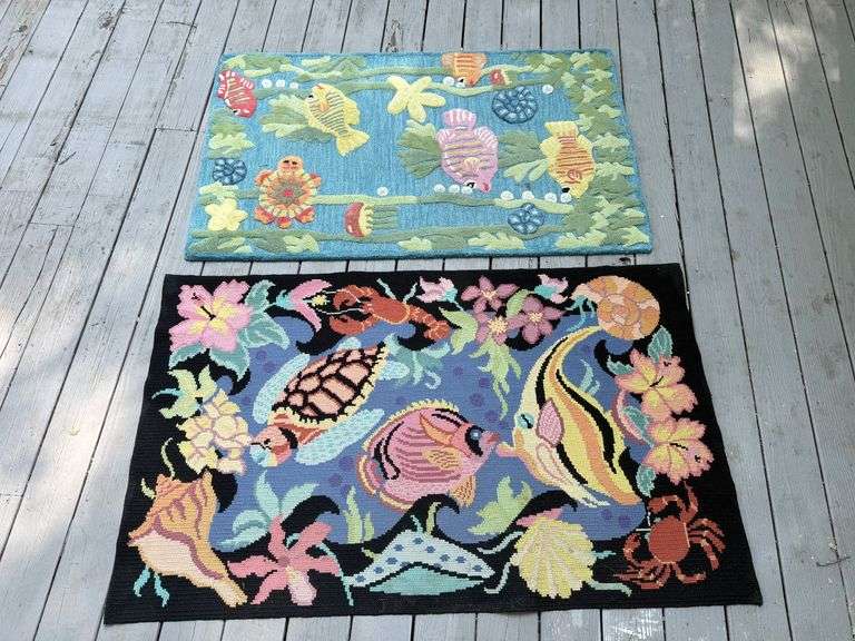 DescriptionDive into a world of color with this set of two hand-tufted rugs! Featuring a vibrant 'Underwater' theme, these rugs bring a touch of the ocean's beauty to your home. One rug showcases an array of tropical fish, sea turtles, and coral reefs, while the other offers a playful scene of various sea creatures. These rugs are approximately 61x35 inches (size from label). Add a splash of marine charm to any room!