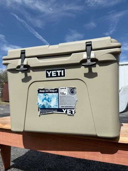 DescriptionReady for some serious chill time? Feast your eyes on this sturdy YETI Tundra 50 cooler! It's like a personal glacier, perfect for tailgating, camping, or those days you just really need to keep your beverages icy cold. It's got a drain and carry handles! It does have some stickers on it as well!