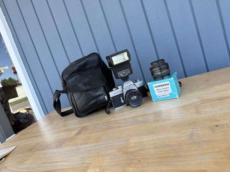 DescriptionStep back in time with this Minolta SRT 202 camera setup, complete with a Vivitar flash and two lenses, tucked neatly into a stylish carrying bag. It's like a portable photography time capsule! The photos will give you a closer look. A treasure for camera collectors, or a gift for the budding film photographer! Untested.