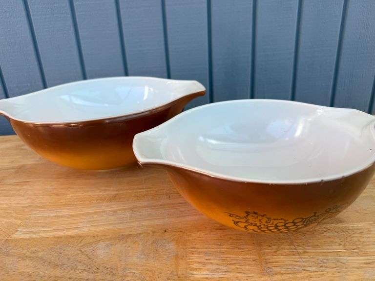 DescriptionGet ready to whip up some delicious memories with these Pyrex mixing bowls! You will receive two bowls: one in solid white, and the other in a wonderful harvest design of fruits in shades of brown and orange. These bowls are ready to bring some fun to your next culinary adventure. See photos for condition and details.