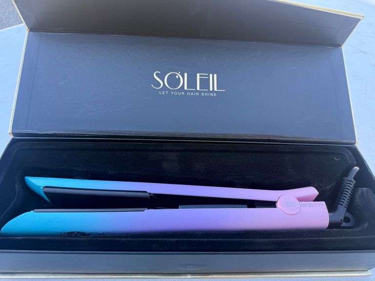 DescriptionUp for grabs is a Soleil Unicorn Limited Edition Flat Iron. This hair tool is not just a pretty face with its fun blue/purple fade; it boasts solid ceramic magnetized plates that heat up to 450°F. Features include ionic technology, floating plates, temperature control, dual voltage, and a 360° swivel cord. Comes with original box, cord, and paperwork. See photos for condition and details.
