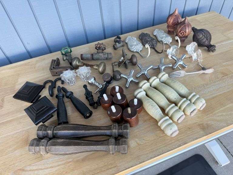 DescriptionDive into this assortment of reclaimed architectural elements and unique finds! You'll discover a mix of door knobs, faucet handles, decorative hooks, furniture legs and various other decorative bits and pieces. A curious collection ripe for repurposing, upcycling, or adding a touch of character to your next creative project. A cornucopia of curious components awaits! See photos for condition and details.