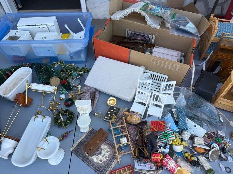 DescriptionReady to build your miniature empire? This massive lot includes everything from dollhouse furniture and fixtures to fully realized miniature rooms and even a couple of dolls. There is a lot here, enough to keep you busy for hours adding to your dream dollhouse or to start a whole new dollhouse world! See photos for condition and details.