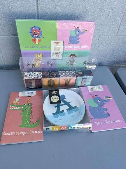 DescriptionThis delightful bundle features a menagerie of fun from Magpie and More! Inside, you'll find notebooks featuring party animals enjoying their favorite snacks, alphabet-themed plates, charming 'LOVE' block place card holders, and party placemats. It's everything you need for a whimsical party or to add a dash of cheer to your stationery collection. See photos for condition and details.
