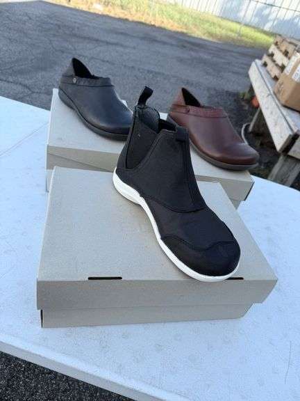 DescriptionStep right up and feast your eyes on this troika of SOLE footwear! Feast your eyes on a black pair of ankle-highs and a black and brown pair of step-ins. These shoes are looking for a new home and hopefully some feet to fill them. See photos for condition and details.