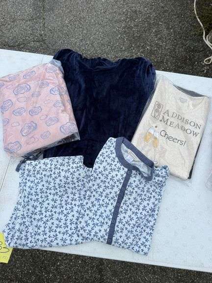DescriptionReady to revamp your pajama drawer? This lot is a cozy dream come true! Featuring Addison Meadow tops and a lush blue velvet hoodie. Pajamagram supplies the rest. Each is a size medium, unique and ready to find a new home. See photos for condition and details.