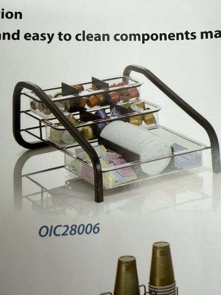 DescriptionDeclutter your breakroom with this nifty Officemate OIC BreakCentral Breakroom Organizer! Perfect for keeping coffee pods, cups, and other essentials neatly arranged. Check out the photos for a closer look at what's included. It's like giving your coffee supplies a little condo of their own!