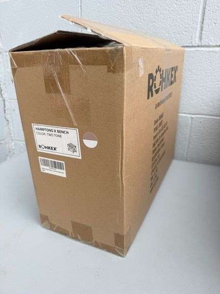 DescriptionStep right up and behold, the Rohkex Hamptons X Bench, ready to bring some two-tone flair to your space. This X-bench could be your new favorite seat! It's all neatly packed in its original box, waiting for its new home. See photos for condition and details.